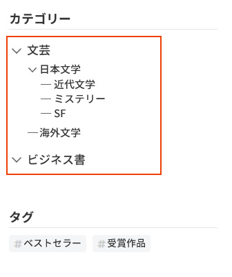 階層構造を持つカテゴリーは以下のようにツリー上で表示されます。