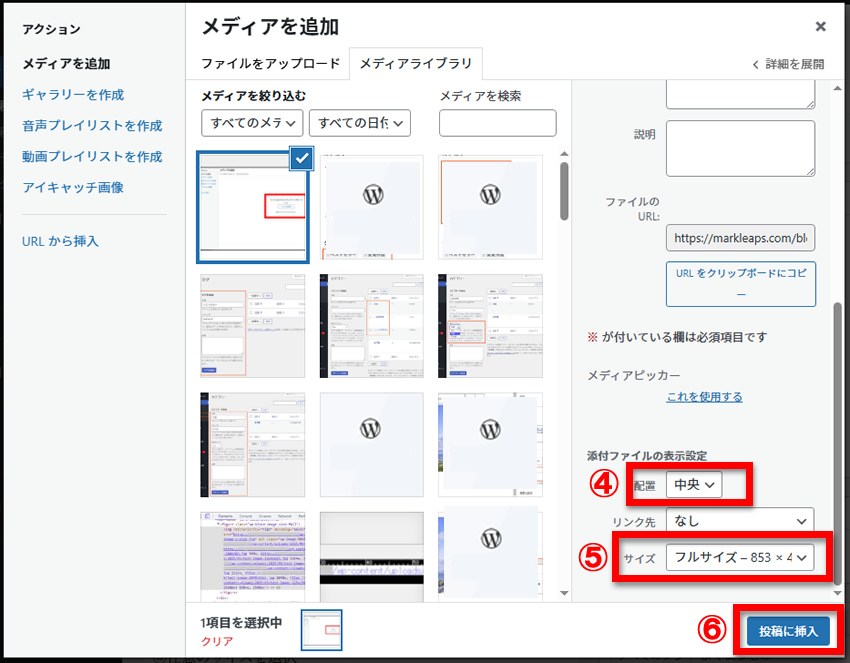 ⑥「投稿に挿入」ボタンを押して画像挿入完了