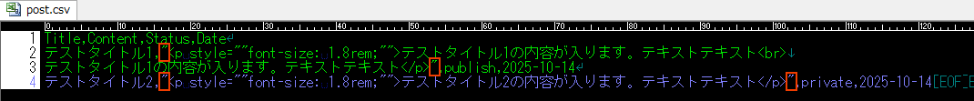 次に、WordPressから一旦離れて、インポート用のCSVファイルを作成します。