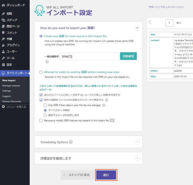 [WordPress] CSVで記事を一括インポート-プラグイン「WP ALL Import」の使い方