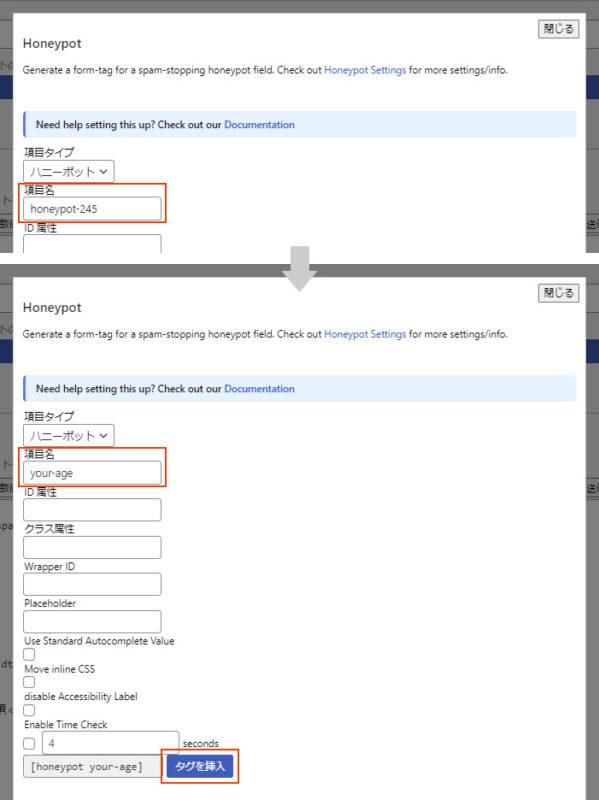 項目名は初期値の「honeypot-xxx」のままだと、botに検知されてしまう可能性があるため、「honeypot」という文字列は避けた名称にしておくと安心です。