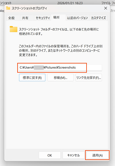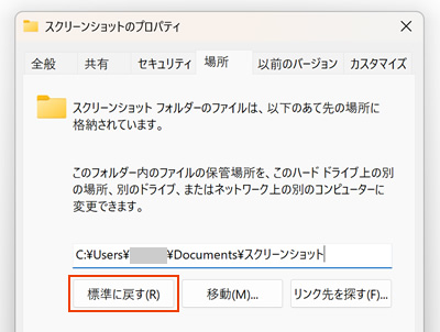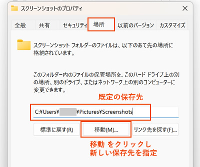 Windows10、11でスクリーンショットの保存場所を変更する手順と元に戻す方法