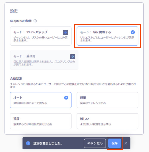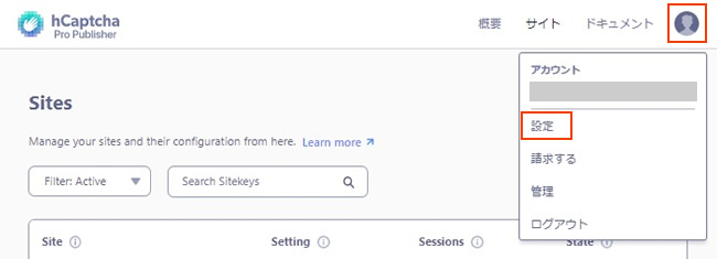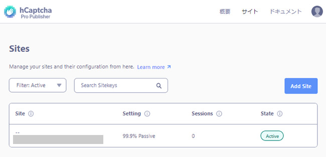 hCAPTCHAの管理画面が英語表示になる場合があります。