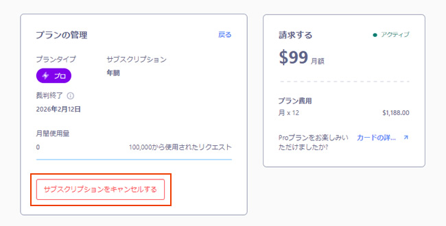 「Pro機能は使わない」「自動切り替えが不安」という場合は、トライアル期間中でも事前にキャンセルすることが可能です。