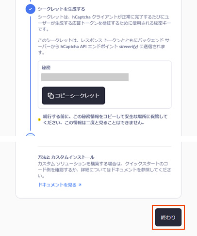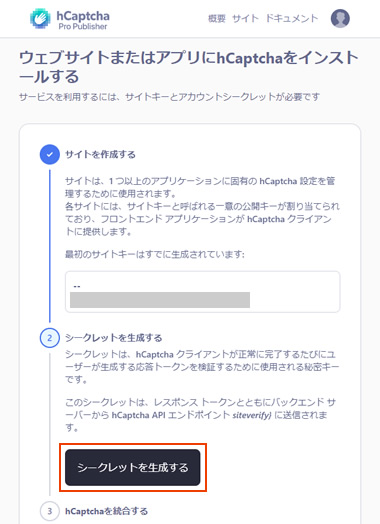 hCAPTCHAのサイトキー・シークレットキーを生成する