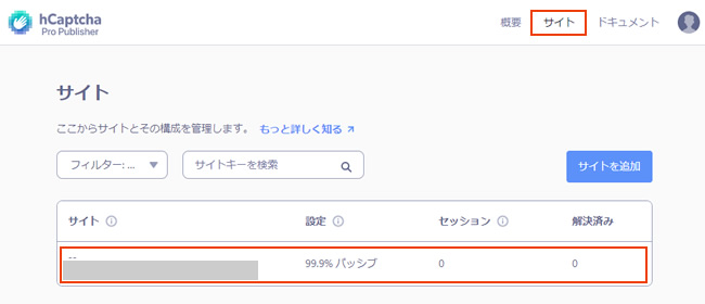 一覧から対象の サイトキーが表示されている行 をクリックします。