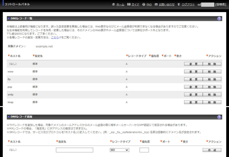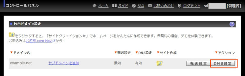- DNS設定は必ずSDプランのコントロールパネルで行う