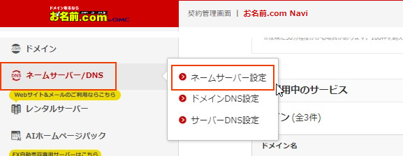 - ネームサーバー/DNS > ネームサーバー設定 を開く